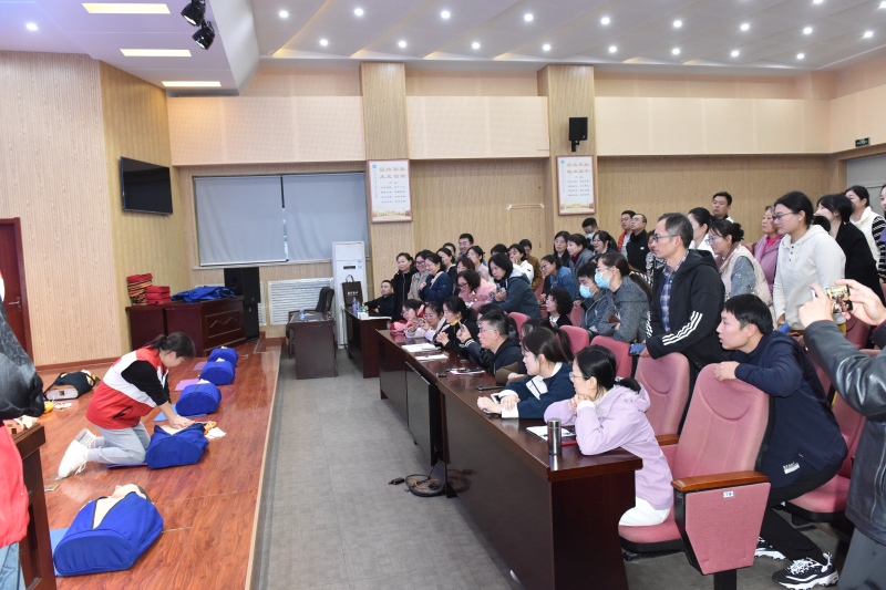 为普及应急救护知识,提升教职工应对突发状况的现场急救能力,10月31日下午,由校工会组织的“心肺复苏(CPR+AED)”专项培训在我校9号楼144报告厅成功举行。本次活动特邀中国职工保险互助会青岛办事处资深专家连锋主任医师担任主讲。